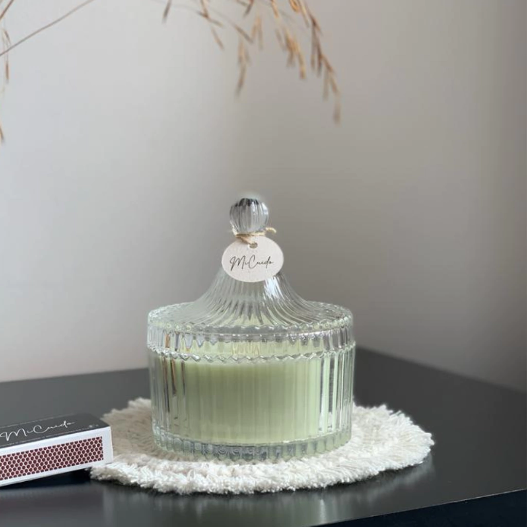 Nossa vela é entregue em uma bomboniere de vidro com tampa, podendo ser reutilizada! Temos o REFIL da vela.